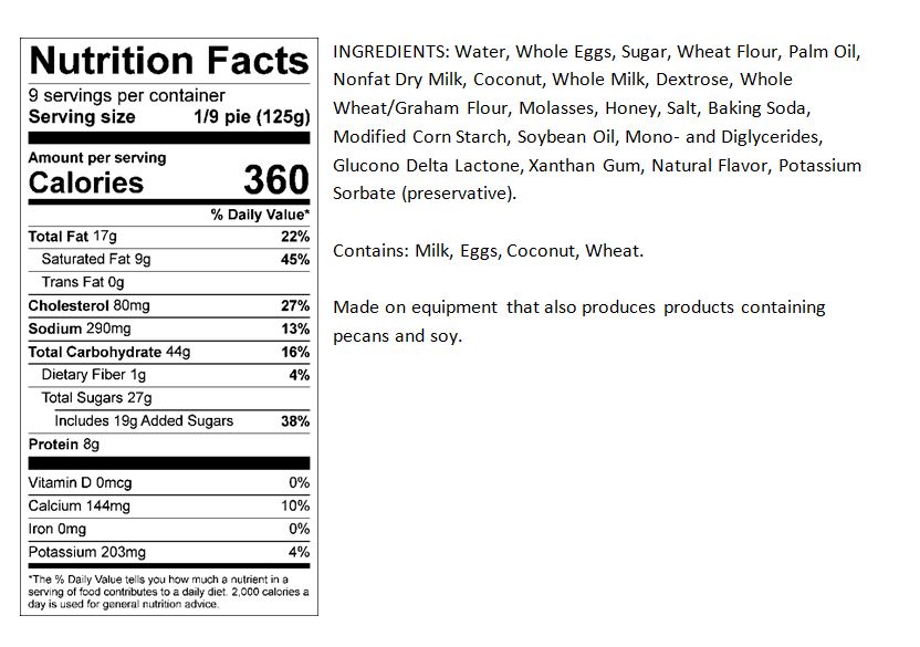 10-inch Coconut Custard Dessert Pie 10-inch Coconut Custard Dessert Pie Available in Bakery Box, Plastic Clamshell, and private label.
