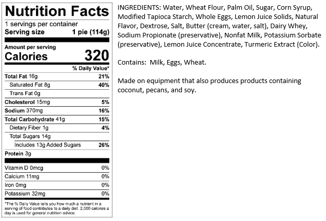 4″ Old Fashioned Snack Size Lemon Pie