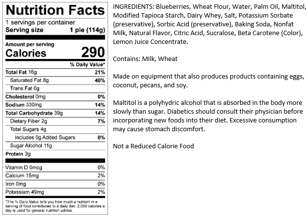 4″ Table Talk Snack Size NSA Blueberry Pie