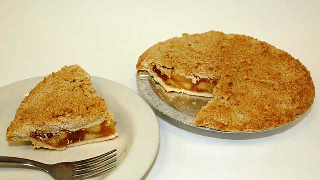 8-inch Apple Crumb Dessert Pie 8-inch Apple Crumb Dessert Pie Available in Red and White Window Carton, Kraft Bakery Box, and Plastic Clamshell
