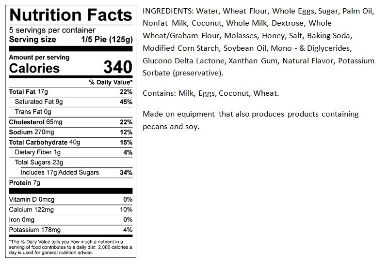 8-inch Coconut Custard Dessert Pie 8-inch Coconut Custard Dessert Pie Available in Red and White Window Carton, Kraft Bakery Box, and Plastic Clamshell