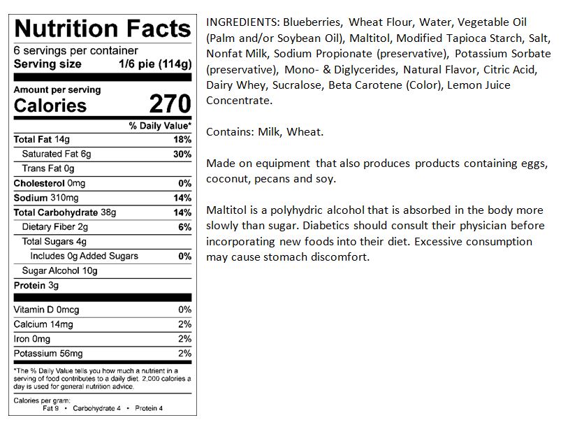 8-inch No Sugar Added Blueberry Dessert Pie