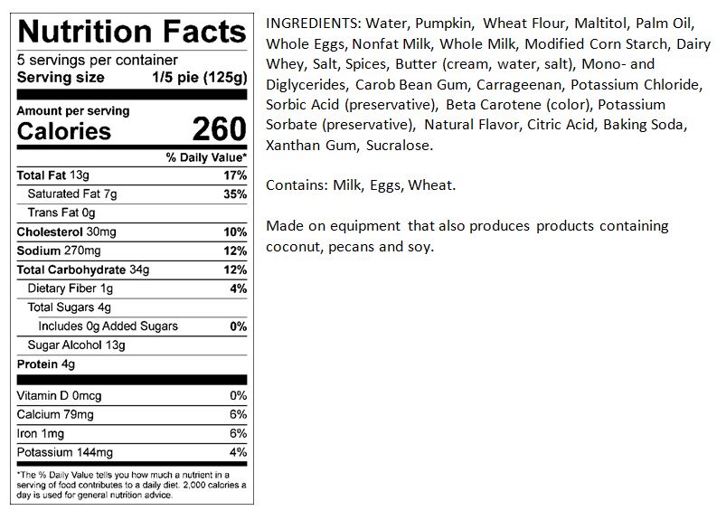 8-inch No Sugar Added Pumpkin Dessert Pie 8-inch No Sugar Added Pumpkin Dessert Pie Available in Kraft Bakery Box and Plastic Clamshell