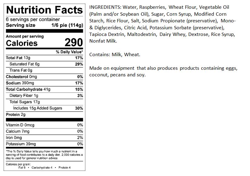 8-inch Raspberry Dessert Pie 8-inch Raspberry Dessert Pie Available in Kraft Bakery Box and Plastic Clamshell